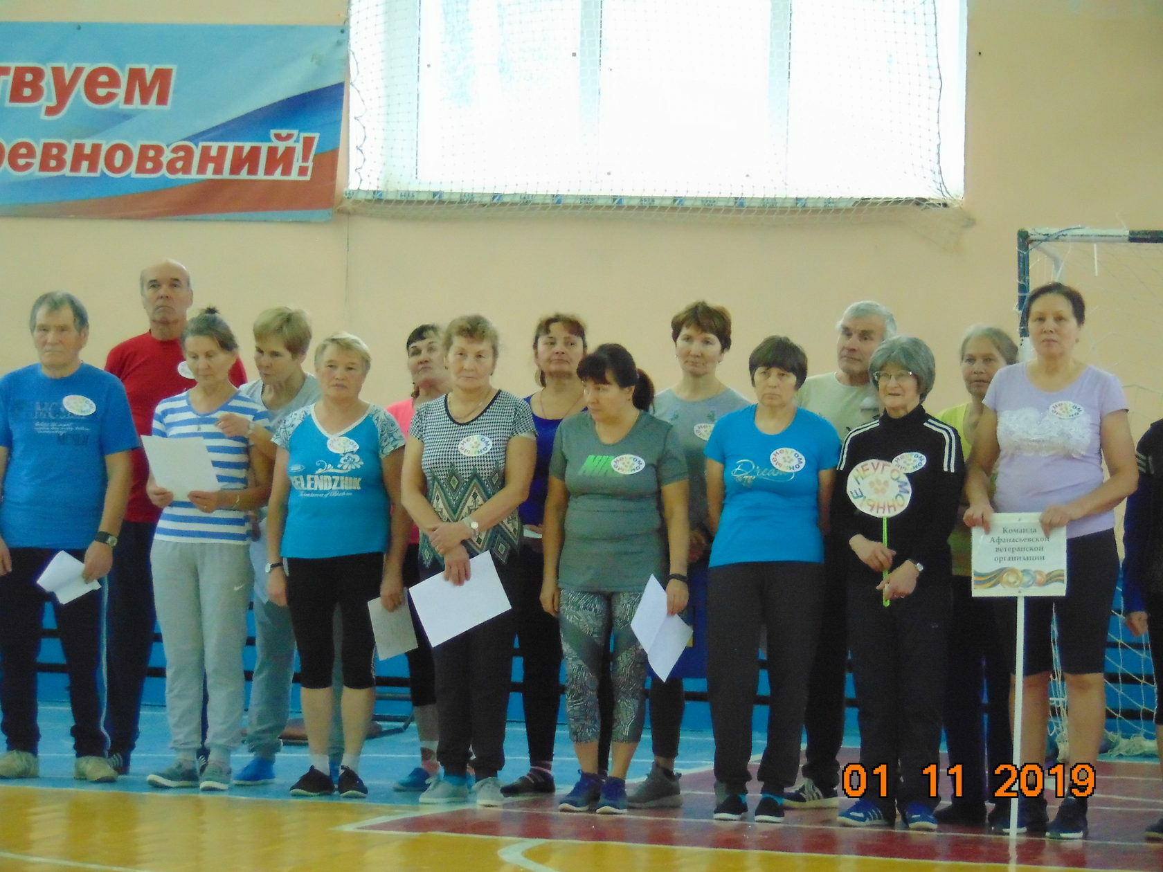 В спорткомплексе детско-юношеской спортивной школы п. Афанасьево первичные организации ветеранов представили пятнадцать команд, 112 участников. Дружно, слаженно звучали названия, девиз команд. Со словами приветствия и благодарностью старшему поколению за активную жизненную позицию выступили Т.Т. Шушакова, заместитель главы администрации района по социальным вопросам, и председатель районной организации ветеранов А.Л. Тебенькова. Почетное право поднятия флага Российской Федерации предоставлено ветерану спорта, чемпиону мира, области и района по лыжным гонкам А.С. Варанкину.