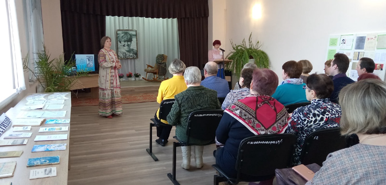 В глубочайшей тишине присутствующие слушают рассказы ведущей Татьяны Васильевны, председателя первичной ветеранской организации районной библиотеки Веры Александровны Черепановой о жизни и творчестве землячки. Ее стихи, опубликованные и еще не опубликованные, о Родине и природе, о любви и дружбе, о долге и предназначении человека читают ветераны, почитатели ее творчества, коллеги, учителя средней школы.