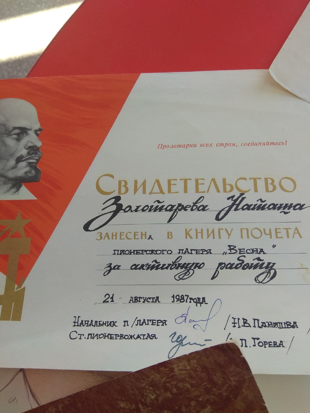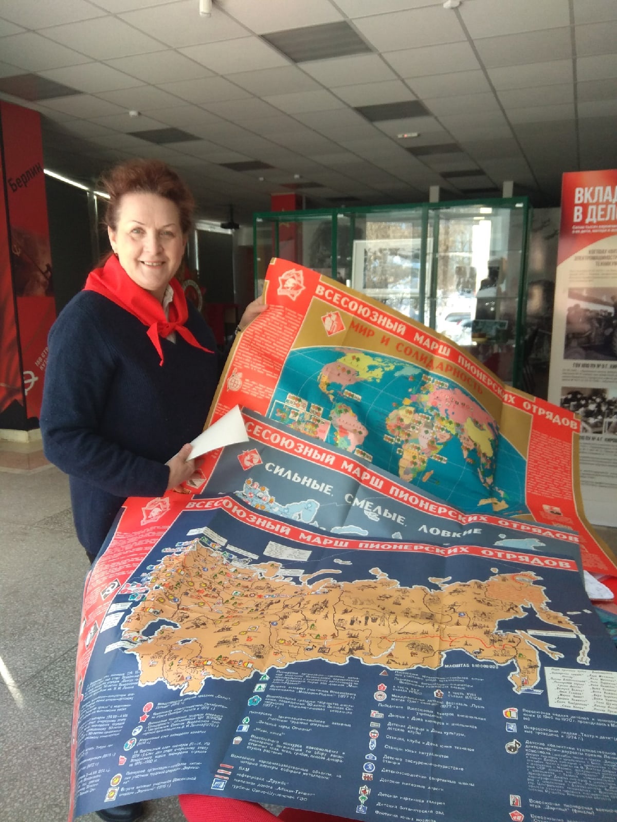 День 9 марта выдался праздничным, по- настоящему пионерским! Экспонаты принесли учитель истории бурмакинской средней школы кирово- чепецкого района Михеева И. А., необыкновенное чувство радости вызвал настоящий именной барабан с деревянными палочками, который предоставила директор Бобинской средней школы Слободского района Воронцова Н. В., украсят будущую выставку экспонаты всероссийского лагеря "Артек", в котором в свое время в вожатской смене была Никифорова Н. Ю. А как интересно было посмотреть почетные грамоты, похвальные листы, письма друзьям из Германии, кляссер и компас! Этим всем занимались мы! Не обошлось без сюрпризов: к нам буквально забежал руководитель регионального центра "Волонтеры Победы" Державин И. Ю. Он принес три огромные карты достижений пионерии СССР до 1971 года! Наглядно показаны все направления работы пионерии, причем с охватом практически всех стран мира! На сегодня уже собран нами 81 экспонат для выставки! Приняли участие 9 человек! Всем большое спасибо! Сбор экспонатов продолжается через координатора проекта "Чистая память"