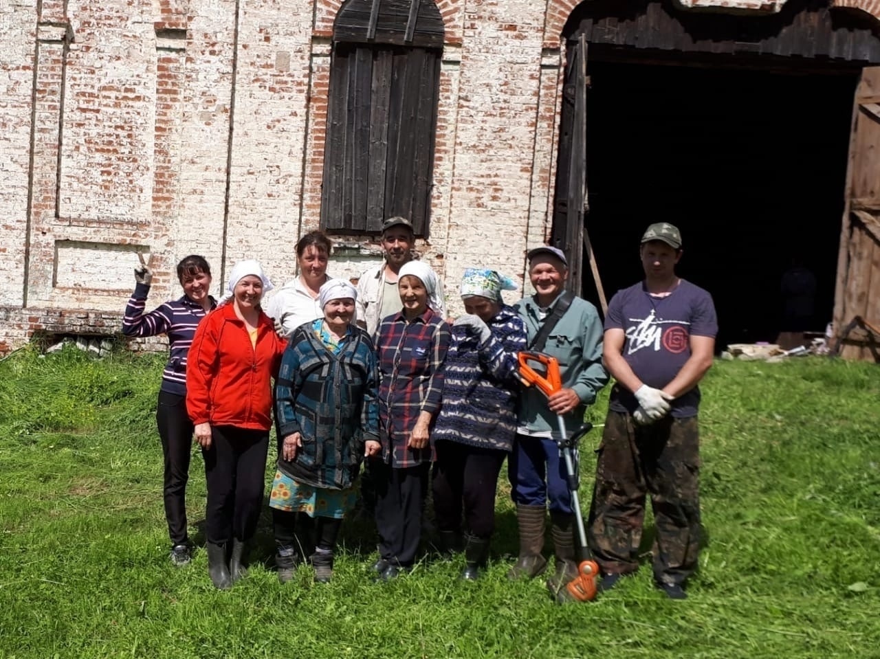 Весёлая и дружная компания собралась на субботнике у Верхолиповской церкви Верхошижемского района.