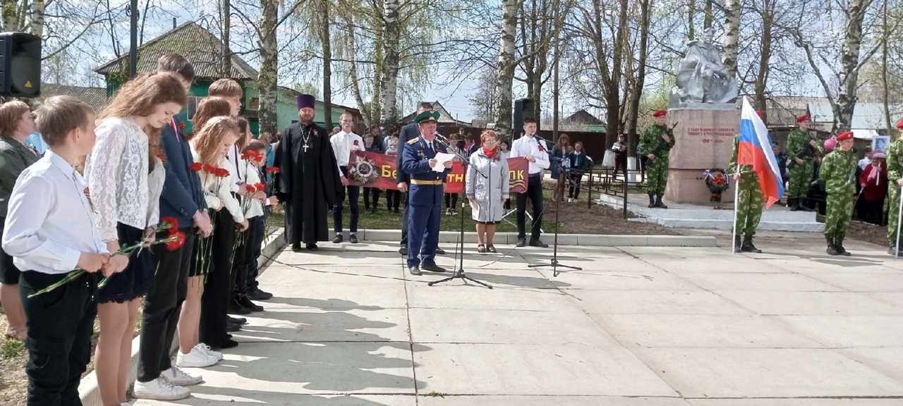 Митинг на Аллее Героев был многолюдным. Вслед за выступлением главы округа Александра Геннадьевича Попова жителей и гостей Санчурска с Днем победы поздравили протоиерей отец Роман, руководитель местного отделения общественной организации «Боевое братство» Юрий Анатольевич Савинов, председатель районной организации ветеранов Галина Федоровна Труфанова. Минутой молчания почтили память всех погибших и воевавших за Родину в той страшной войне. Дети возложили цветы к мемориальным доскам Героев Советского Союза, представители организаций и учреждений – к памятнику воинам-землякам.