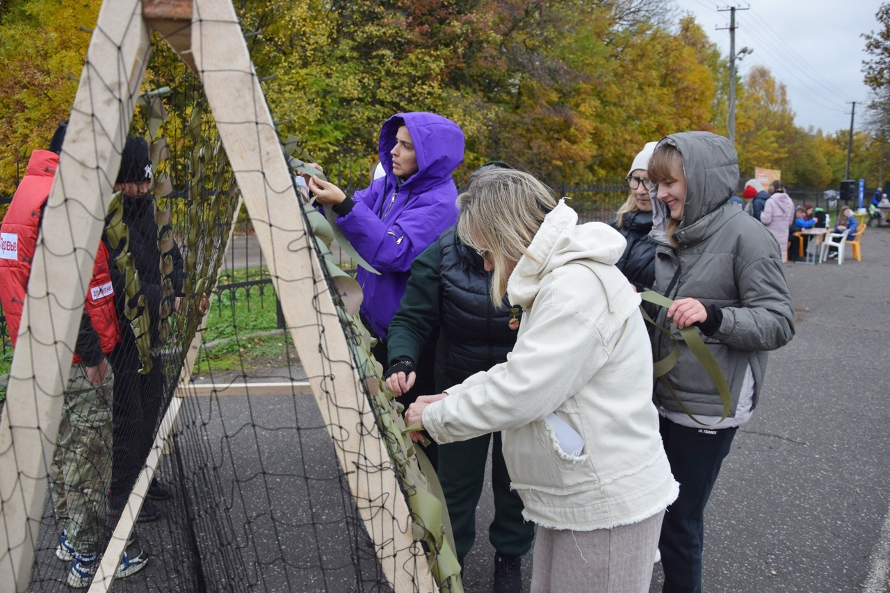 Коллектив отдела № 26 Управления Федерального казначейства по Кировской области так же, как и редакция, регулярно оказывают помощь фронту. Казначеи плетут маскировочные сети, шьют нижнее бельё и футболки, вяжут коврики. На фестивале Ольга Глушкова провела мастер-класс по плетению маскировки. Участники мероприятия писали на ленточках пожелания нашим защитникам и вплетали их в основу. Волонтёры верят, что сеть, хранящая тепло рук земляков, в том числе и детей, заряжена особой положительной энергетикой, которая призвана защитить бойцов и оградить их от любых напастей.