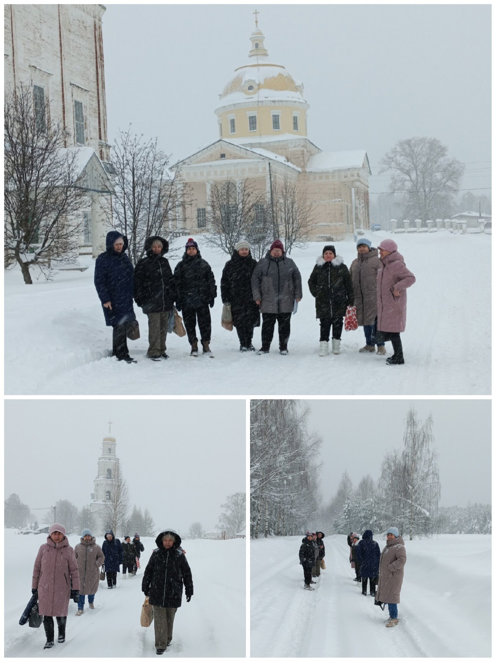 Воскресный день выдался непогожим. С самого утра падал снег, но это нас не остановило, мы отправились в гости к нашим соседям. В Великорецком нас радушно встретила местная жительница - председатель первичной организации ветеранов Оборотова Татьяна Васильевна и провела нам познавательную экскурсию, рассказав о «Великорецком», как о региональном памятнике природы, особо охраняемой природной территории, примыкающей к роднику и спускающейся вниз по реке Великой.
