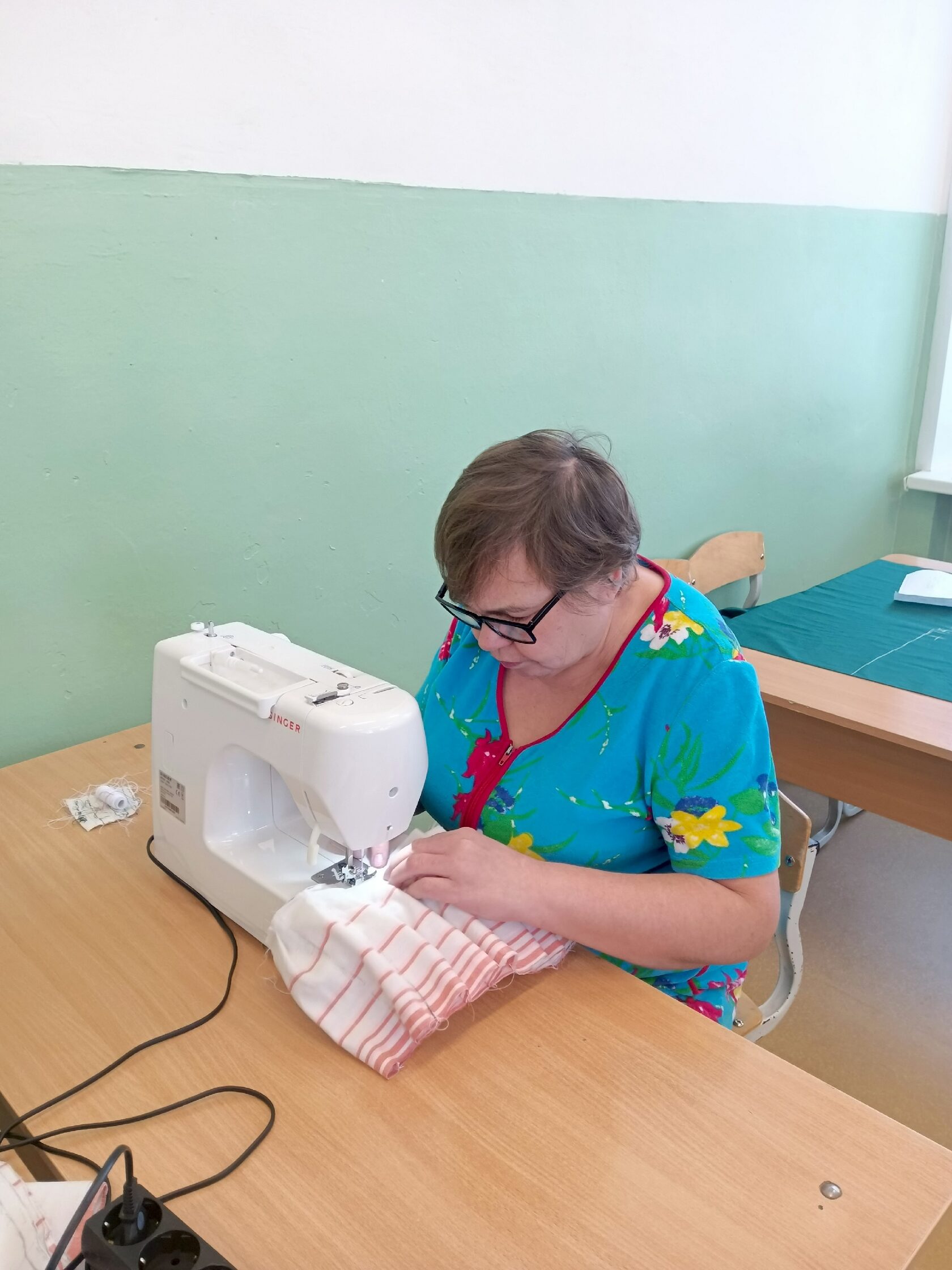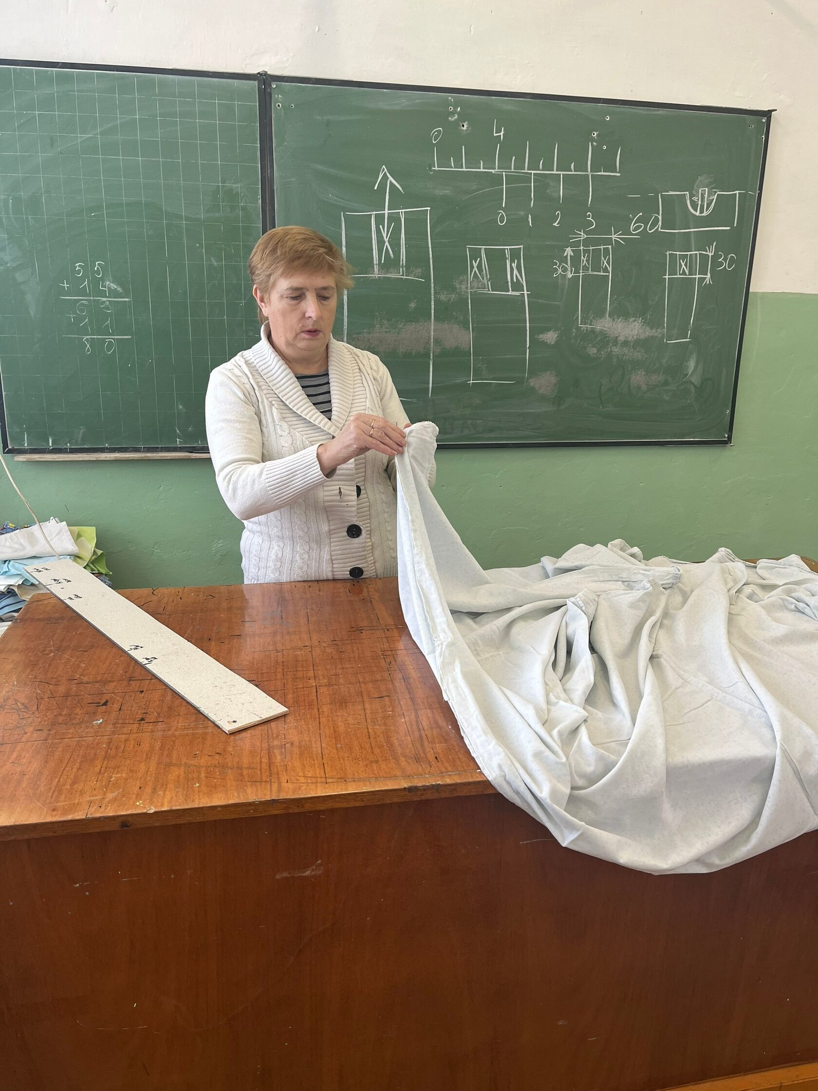 Кроим и шьем в помещении Вичевской средней школы и на машинках, предоставленных этой же школой.