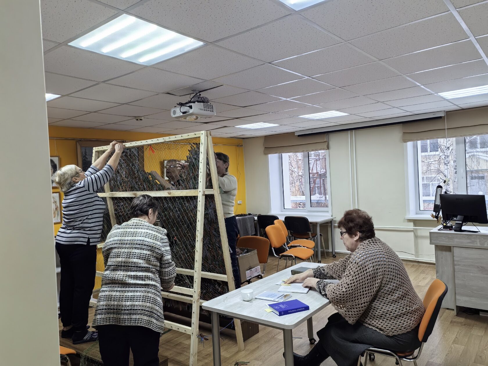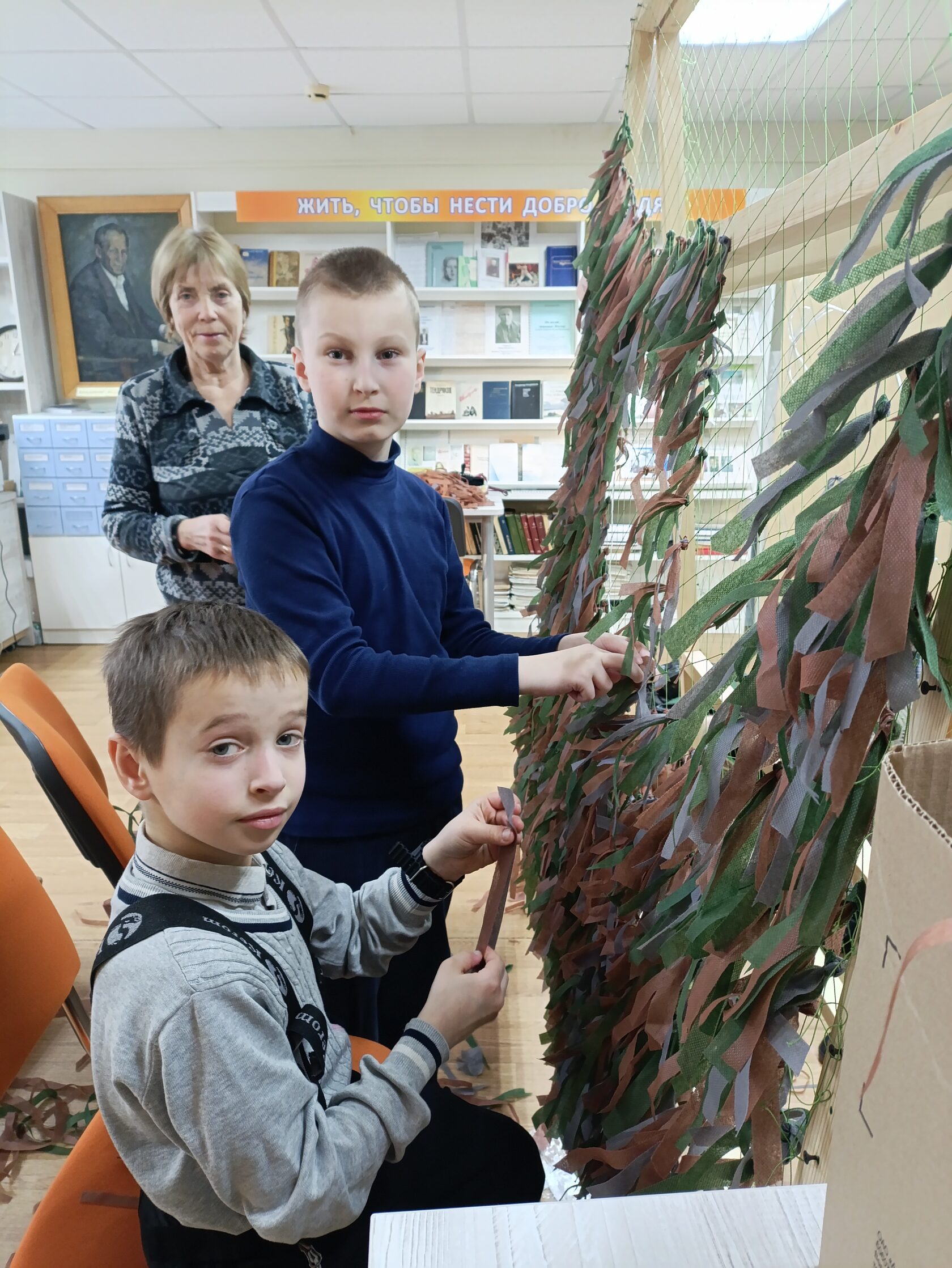 Закончив плетение маскировочных сетей, волонтеры пос. Подосиновец начали изучать технику изготовления костюма «лешего». В настоящий момент вопрос досконально изучен. За помощью обращались к соседям- волонтерам из Мурашей и Опарино. Женщины отточили свое мастерство и уже сейчас собирают по 2-3 костюма в день. Своим мастерством и опытом также делятся и с волонтерами других поселений района. Можем дать консультацию по изготовлению всем заинтересованным лицам. Рамку для плетения костюмов и станок для нарезки ленточек изготовил наш волонтер-умелец В.А. Шутихин. Вместе с другим волонтером Ю.И. Михеевым они собрали рамку, установив ее в помещении районной библиотеки. Причин для установки именно здесь несколько. Сюда удобнее приходить школьникам на помощь. Работники библиотеки с удовольствием выступают с различными темами перед «серебряными» волонтерами. В библиотеке работают различные кружки и клубы, участники которых также откликаются на призыв о помощи в плетении. Костюмы, по мере их изготовления, будут отправлены на передовую. В них особо нуждаются штурмовики, разведчики и снайперы. В изготовлении костюмов участвует и стар, и млад. Цель одна - Победа.