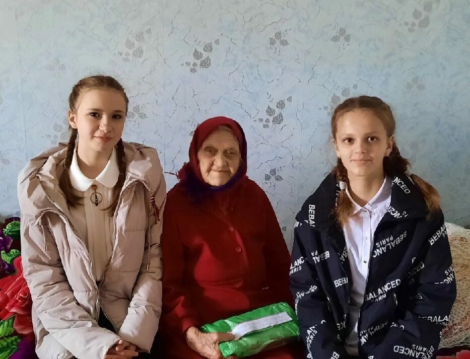 В преддверии дня Победы члены бюро Совета ветеранской организации совместно с волонтерами объединения «Открытые сердца» посетили вдов участников Великой Отечественной войны. Вручили письма – поздравления в честь Дня Победы и небольшие сладкие подарки. К сожалению, с каждым годом наших ветеранов, воевавших на фронтах и ковавших победу в тылу, становится все меньше и меньше. На сегодняшний день в нашем районе два участника войны и восемь вдов участников. На снимке: волонтеры в гостях у Хомяковой Клавдии Петровны ,несмотря на возраст, ей 95 лет, она чувствует себя нормально, доброжелательна и гостеприимна.