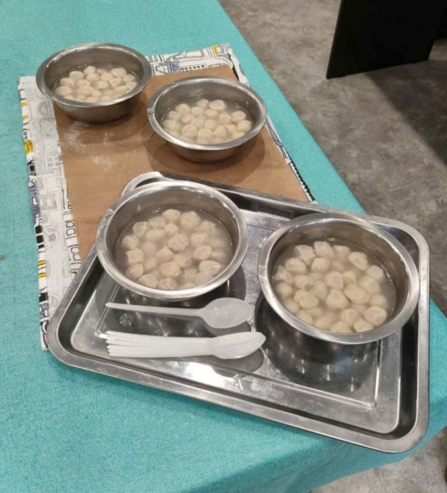 А в завершение встречи все смогли попробовать блюдо южной Вятки - полушку - маленький круглый пельмешек, который получил название от монетки стоимостью в полкопейки - полушки.