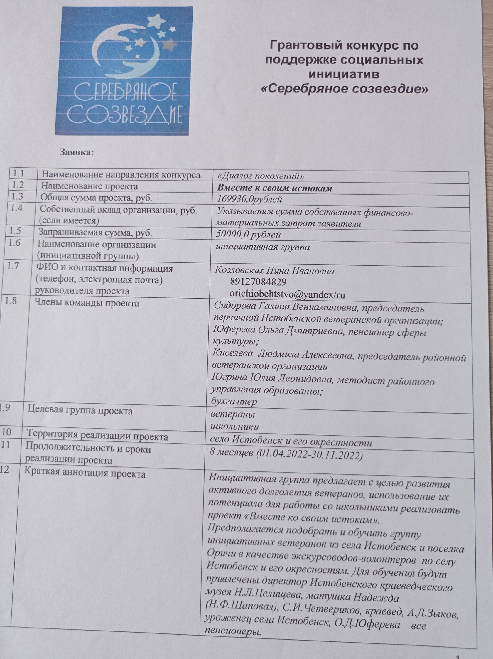 В ходе реализации проекта предполагается подобрать и обучить группу инициативных ветеранов из села Истобенск и поселка Оричи в качестве экскурсоводов-волонтеров для проведения познавательных экскурсий со школьниками по с. Истобенск и его окрестностям.