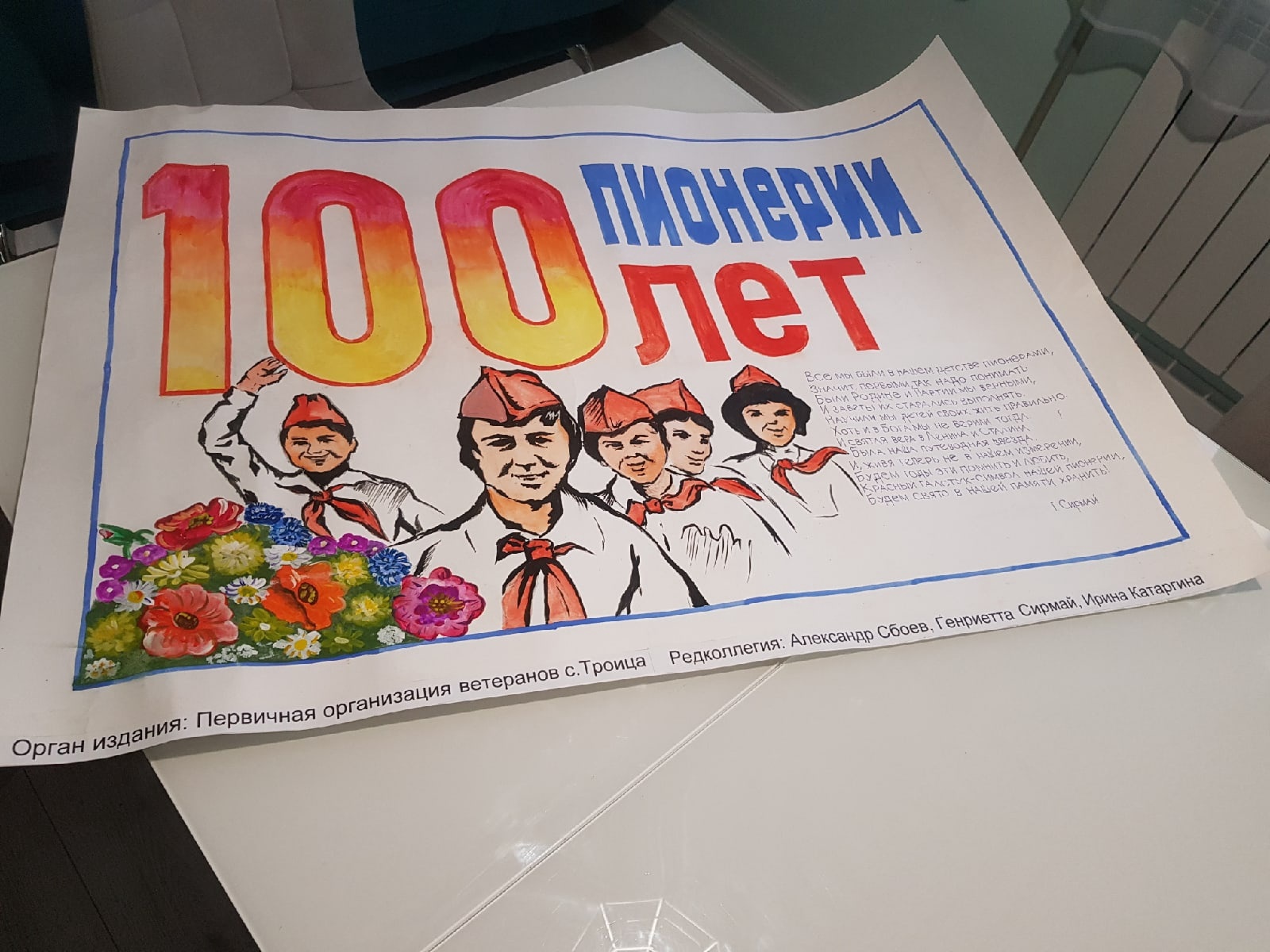Редколлегия состояла из самых творческих ребят: художников, поэтов, писателей. Вот и нашу газету к 100-летию Пионерии создавали экс-пионеры: организатор Ирина Катаргина, художник Александр Сбоев и поэт Генриетта Сирмай.