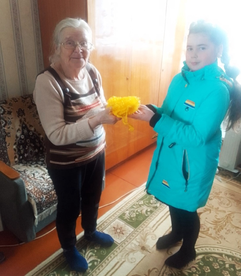 В рамках проведения благотворительной акции «Добрые дела для «невидимых» стариков» дети из объединения "Волшебный клубок" вместе с педагогом О.В. Агафонцевой подарили одиноко проживающим пенсионерам связанные своими руками прихватки, салфетки, мочалки.