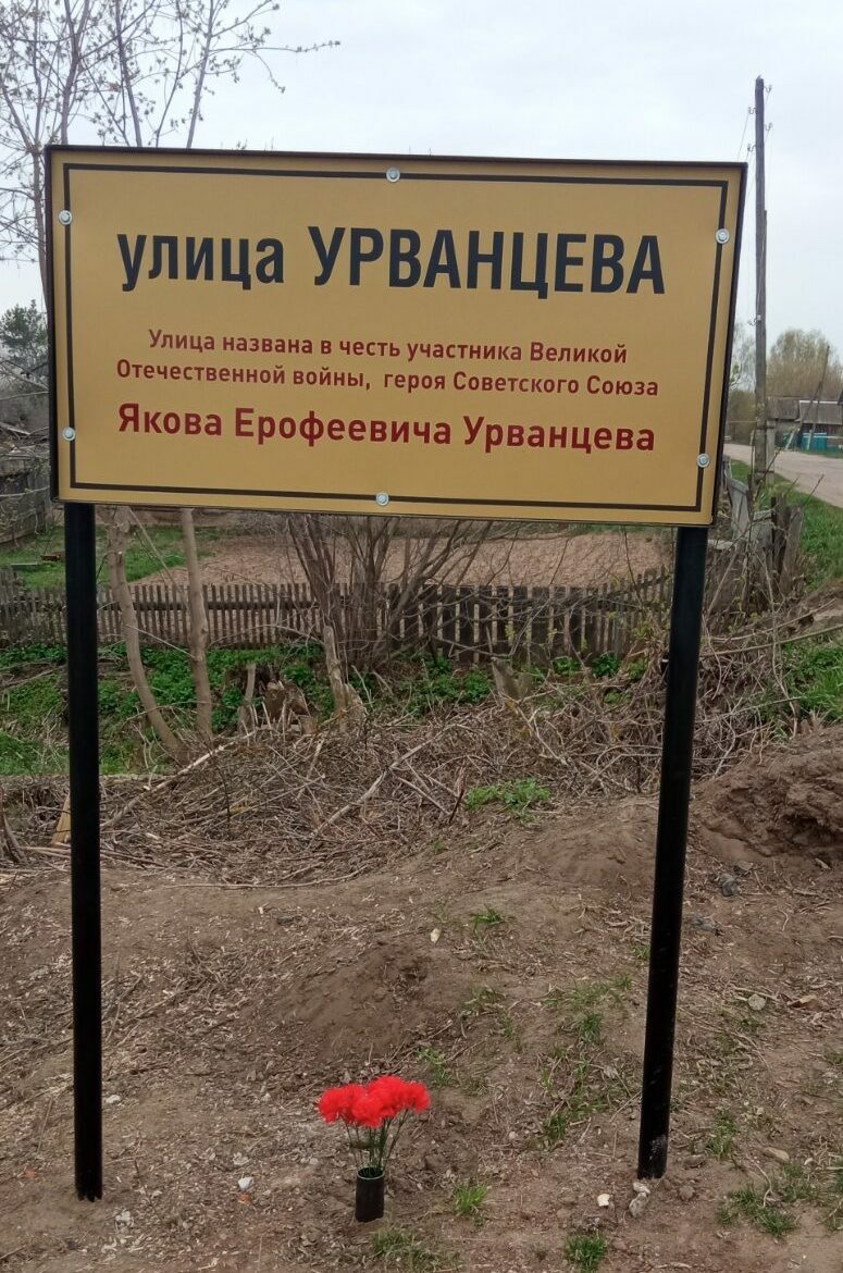 По инициативе Владимира Фёдоровича Полякова, начальника ПЧ№71 с. Шурма, при поддержке главы Шурминского муниципального поселения Трухина Сергея Владимировича, который изыскал средства и изготовил в областном центре доску, а Владимир Фёдорович Поляков с личным составом изготовили, покрасили и установили доску на обочине дороги в начале улицы, 9 мая 2022 года в День ПобеДы в торжественной обстановке открыли памятную доску.