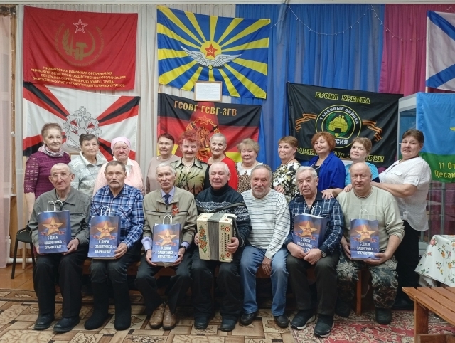 Коллектив музея сердечно приветствовал ветеранов. Особенное внимание было уделено мужчинам, которым были адресованы тёплые поздравления с приближающимся праздником. Прекрасная часть народного хора «Сударушка», исполнив праздничные песни, добавили мероприятию нотку душевности и веселья. Каждый мужчина получил памятный подарок. Председатель районного отделения Союза пенсионеров России Валентина Павловна Докучаева выступила перед собравшимися с речью, подчеркнув важность сохранения памяти и уважения к подвигам защитников Родины. Её выступление сопровождалось исполнением проникновенной песни «Две души».