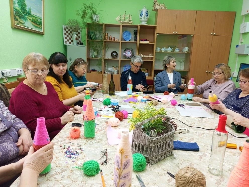 В уютной атмосфере центра общения старшего поколения прошло творческое занятие «Декор бутылки: создаём стильную вазу», посвящённое преображению обыденных вещей в настоящие произведения искусства. В этот раз участники взялись за, казалось бы, простую, но такую благодарную задачу – декор бутылок, превращая их в стильные и неповторимые вазы.