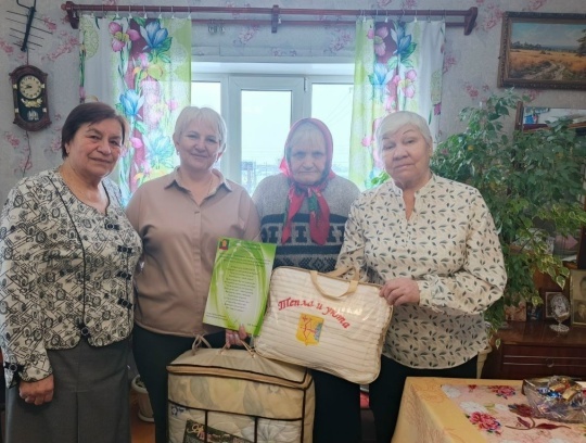 Галина Макаровна, несмотря на свой преклонный возраст, встретив гостей, захлопотала на кухне. Помогли и мы, и вот чай на столе. Чаепитие началось с теплых сердечных поздравлений Галины Макаровны Чераневой с 90-летним юбилеем, начальником Афанасьевского территориального управления С.Н. Бузмаковой, председателями Афанасьевской районной и поселковой организаций ветеранов А.Л. Тебеньковой и Т.Н. Носковой. С большой благодарностью были приняты юбиляршей подарки, особенно теплый плед от Правительства Кировской области. Очень дорого такое внимание.