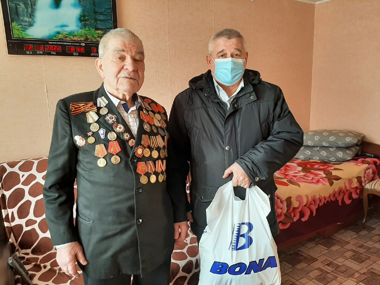 Вручение продуктовых наборов прошло с соблюдением санитарных норм.