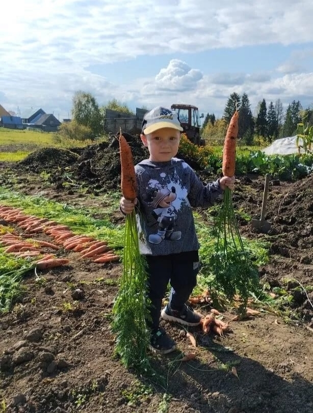 Участвовать в конкурсе «Ветеранское подворье» Бузмаковым предложила председатель «первички» Т.А. Лучникова. «Я не сразу приняла идею, считаю, что у нас ничего особенного, все как у всех. Собрали фотографии, дети смонтировали видео. Спасибо жюри за высокую оценку», - поблагодарила Надежда Власовна. Фотографии из повседневной огородной жизни получились интересными. Например, привлекает внимание гряда моркови с внушительным урожаем, кукурузные заросли. «Мы все морковку любим - в сыром виде, различных салатах, внуки любят погрызть. Много делаем паренок из моркови. Полезный овощ. Сажу обычные сорта - «нантскую», «королеву осени», «витаминную». Еще сорта два новых - на проверку. Кукурузой увлеклась второй год. Сначала не получилось, а нынче хорошие початки, отвариваем в подсоленной воде, масло добавляем - тоже всем нравится», - рассказывает хозяйка.
