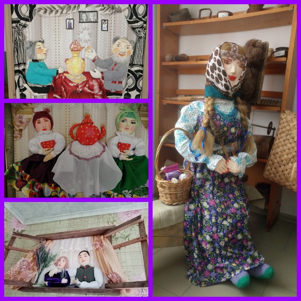 Год назад Вера Михайловна стала мастерить картины из лоскутов и соленого теста. И появились на свет: «Жених и невеста у летнего окошка», «Дедуля с бабулей у самовара», «Подружки за чаем с баранками», «Веселая пляска» и другие. Иногда использует пластилин и другой подручный материал.