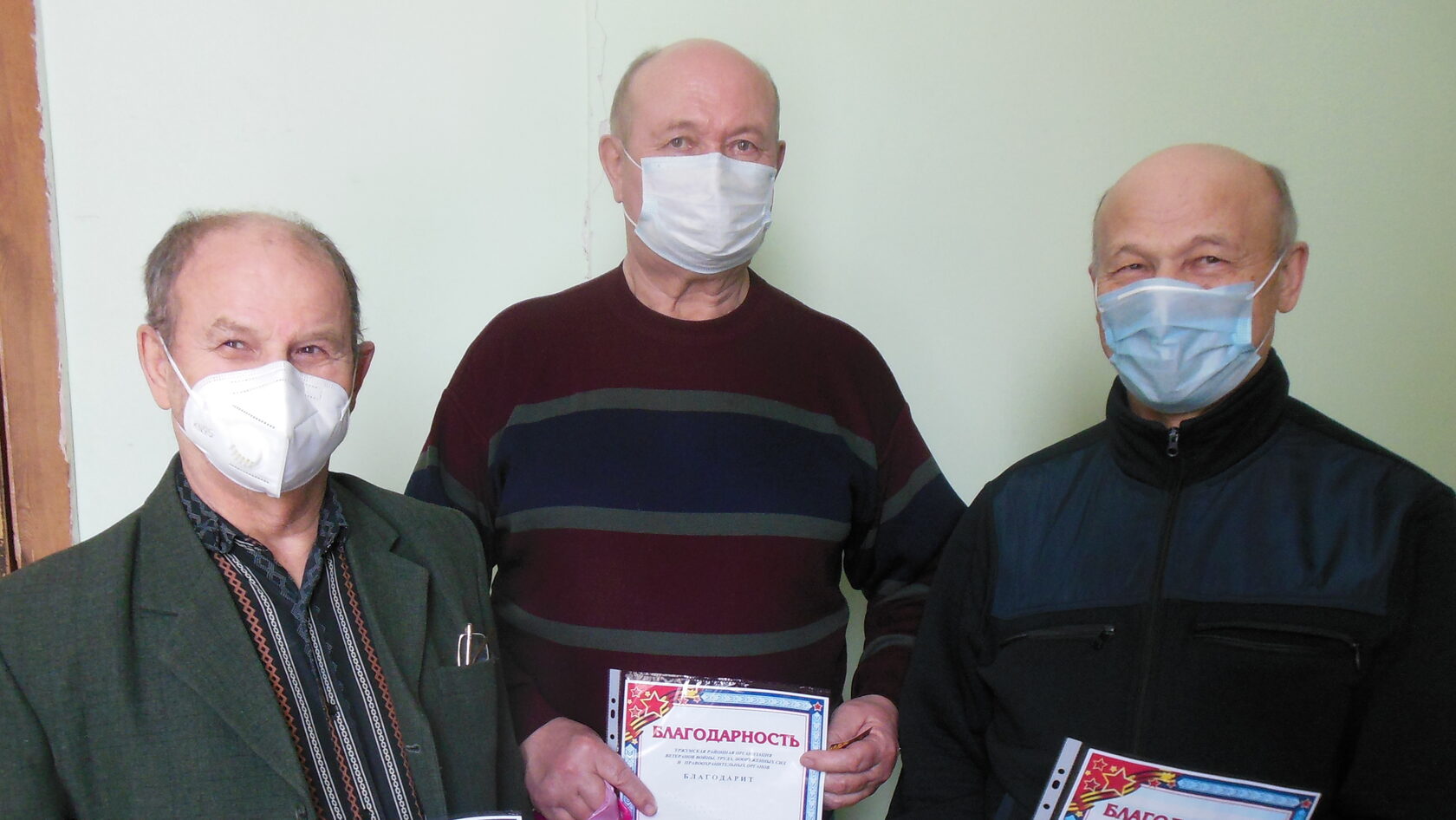 Соревнования выявили самых метких. Ими стали ветераны-активисты, члены бюро и президиума районной организации Пётр Михайлович Воробьёв, Валентин Павлович Челышев и Николай Иванович Зараменских (на снимке).