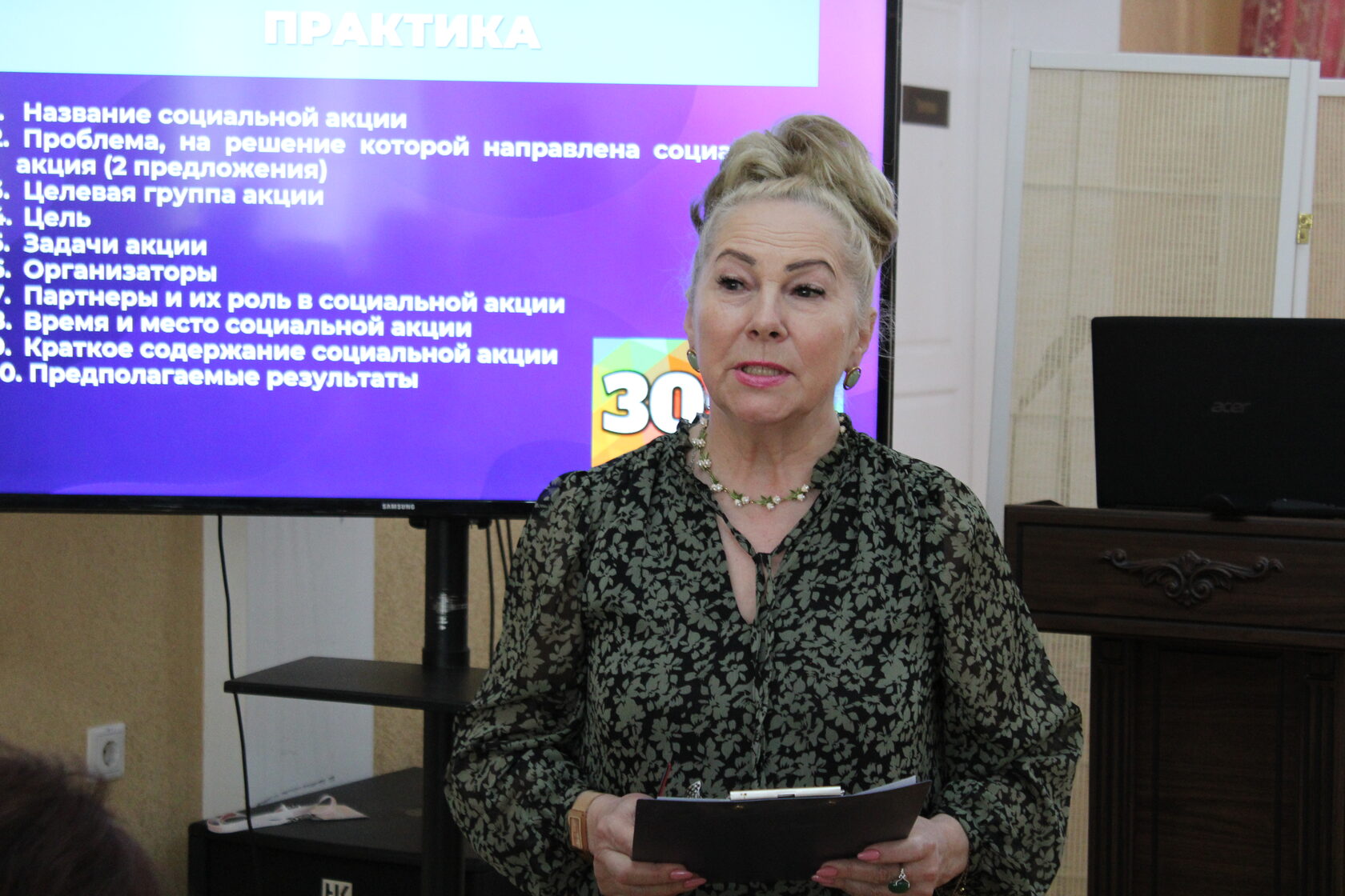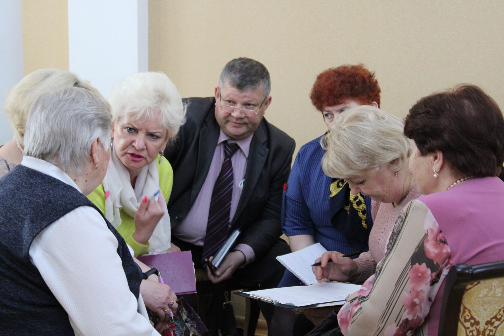 Затем представитель каждой микрогруппы презентовал наработки, а остальные участники семинара выступили в роли доброжелательных экспертов. По результатам этой работы было представлено более 10 социально значимых акций по разным направлением нашей работы: поддержка и укрепление здоровья, сохранение памяти о тех населенных пунктах, которых уже не существует, обучение ветеранов информационным технологиям, централизованное подключение к Госуслугам, адресная, разовая помощь ветеранам в решении бытовых проблем, благоустройство территории, воинских захоронений, патриотическое воспитание населения и другие.