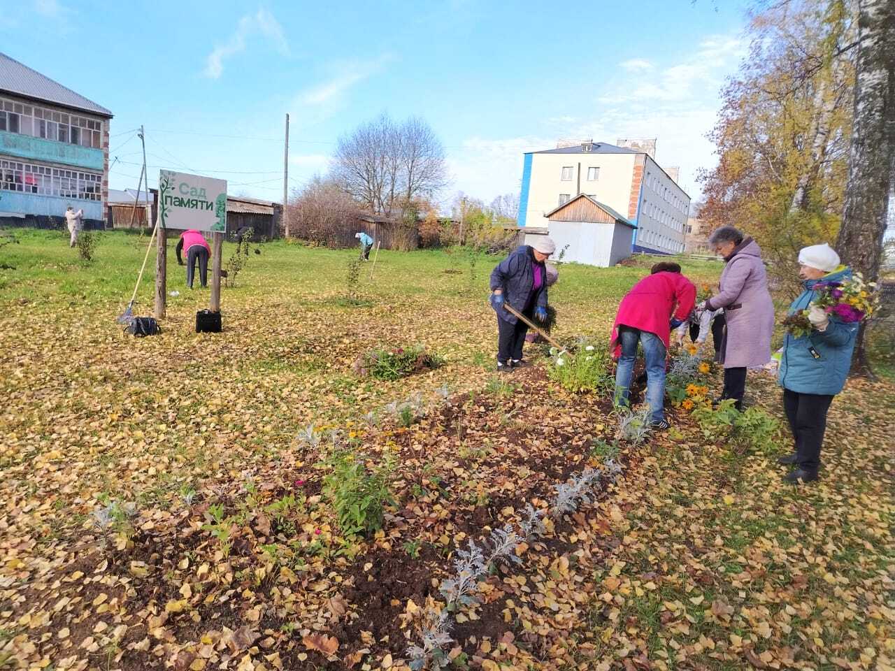 В один из октябрьских дней здесь был вновь организован субботник. Убирали отцветшие растения с клумбы, опавшую листву. Заботливо подкормили яблоньки удобрением и пропололи от травы.