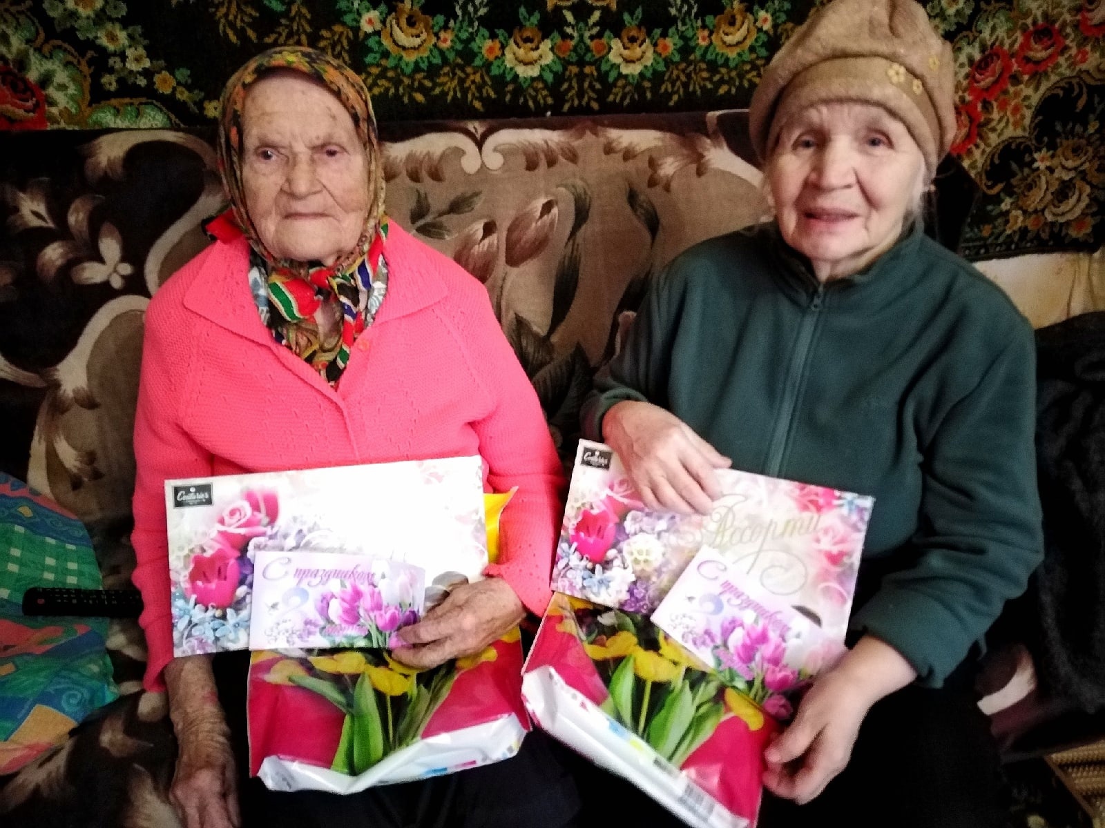 Совет ветеранов п. Торфяной Оричевского района поздравил 12 славных тружениц тыла посёлка с Международным женским днём 8 марта! Благодарим за спонсорскую помощь СПК "Балкер". Наши дорогие женщины были очень рады! Приятно пообщаться с людьми, которые много пережили в своей жизни и не потеряли оптимизма. Например, Фаина Ионовна Репникова пишет стихи, гуляет каждый день, а ей 93 года! Мы не забываем наших ветеранов, посещаем их, дарим подарки к праздникам и интересуется их буднями.