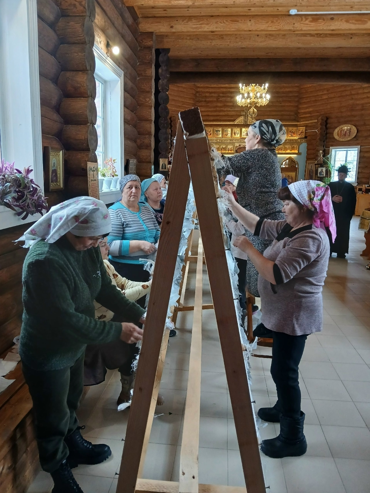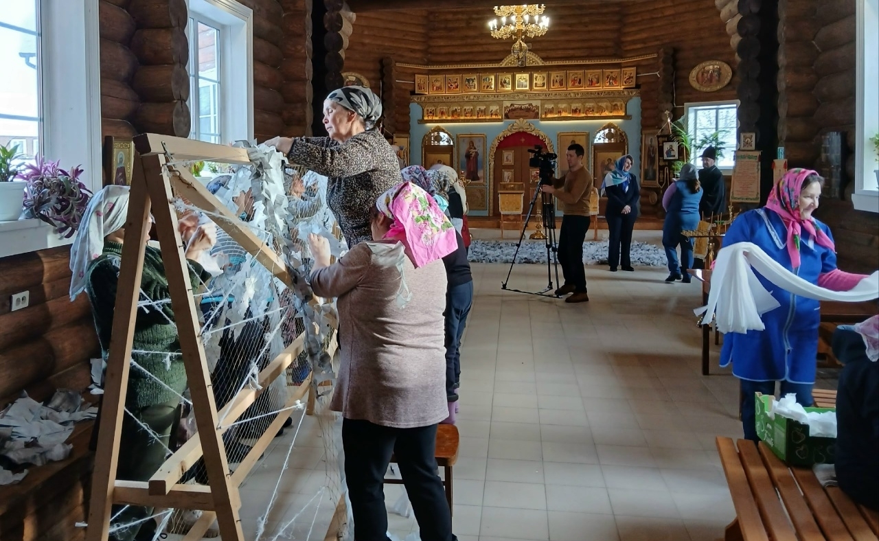 В храме села Бисерово Афанасьевского муниципального округа звучат молитвы о мире, а женщины, «серебряные» волонтеры плетут маскировочные сети.