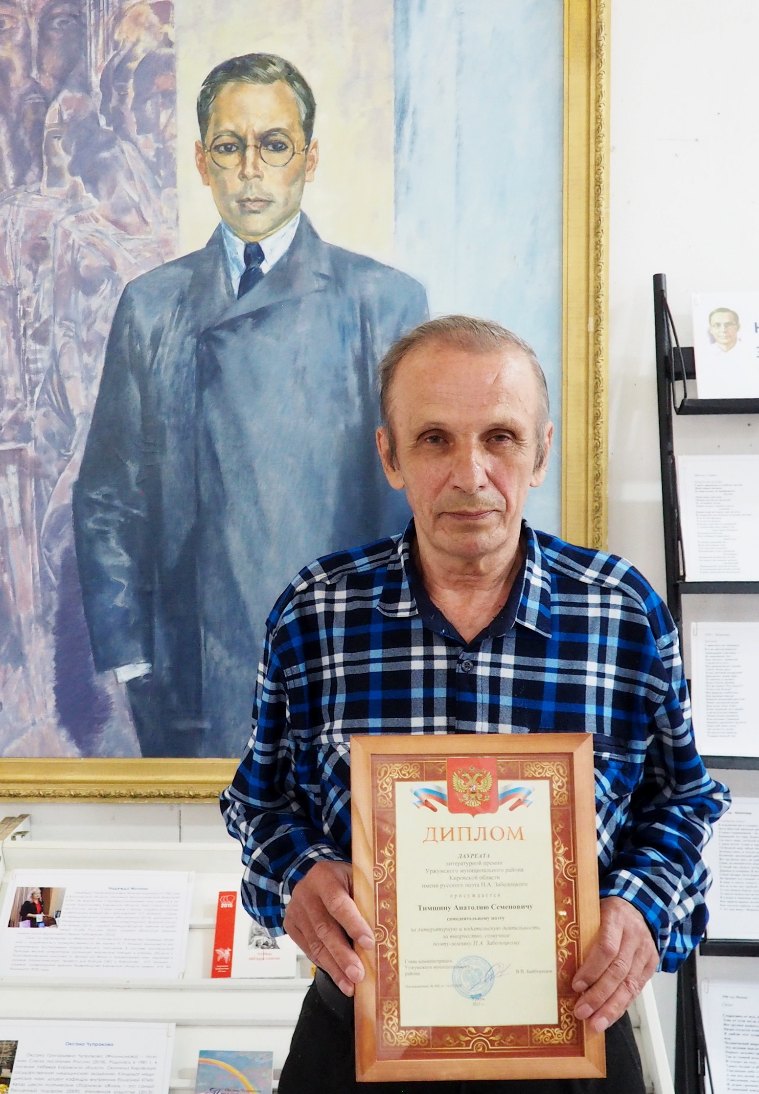В мае 2025 года самодеятельный поэт Анатолий Тимшин был удостоен литературной премии имени русского поэта Николая Заболоцкого, учреждённой Уржумским районом. Оправдывая такую высокую награду, наш земляк продолжает творить и выпускать новые книги. В конце 2025 года в городе Кирове небольшими тиражами изданы сборники стихов «Поклонись до земли своей родине малой. Люди, прославившие Вятский край» и «С надеждой и верой». В них вошли произведения автора как прошлых лет, так и написанные вновь.