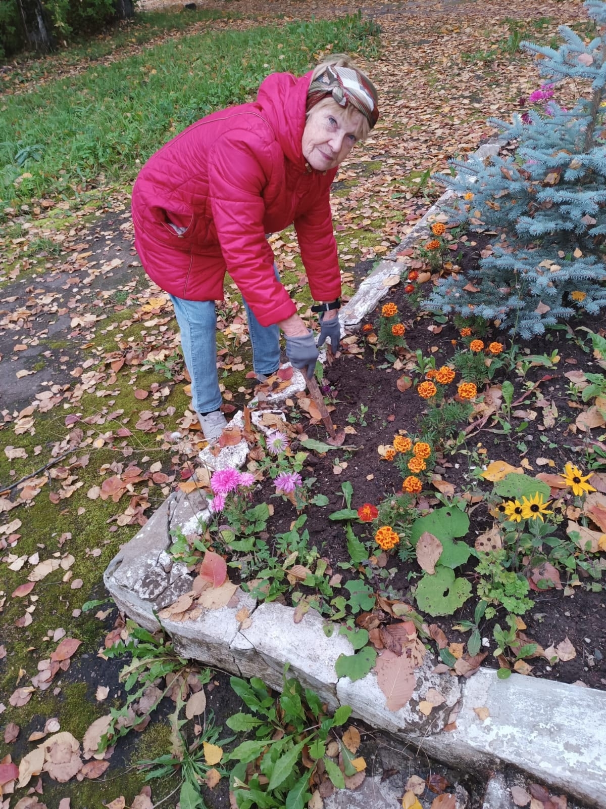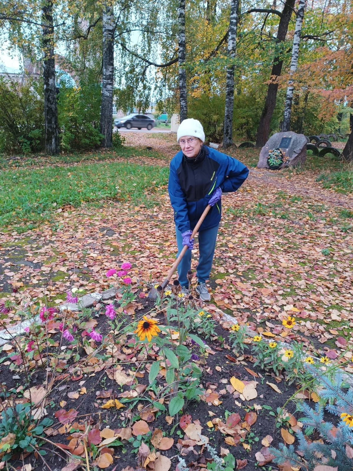 «Серебряные» волонтеры регулярно прибираются у памятника: в этот раз, посадили осенние цветы, убрали сухую траву и отцветшие кустарники.